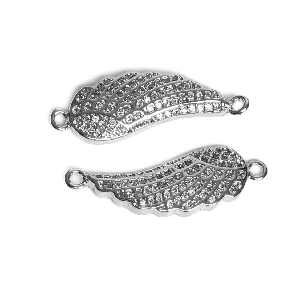• Nagyobb szárny közdarab ezüst fehér cirkonnal