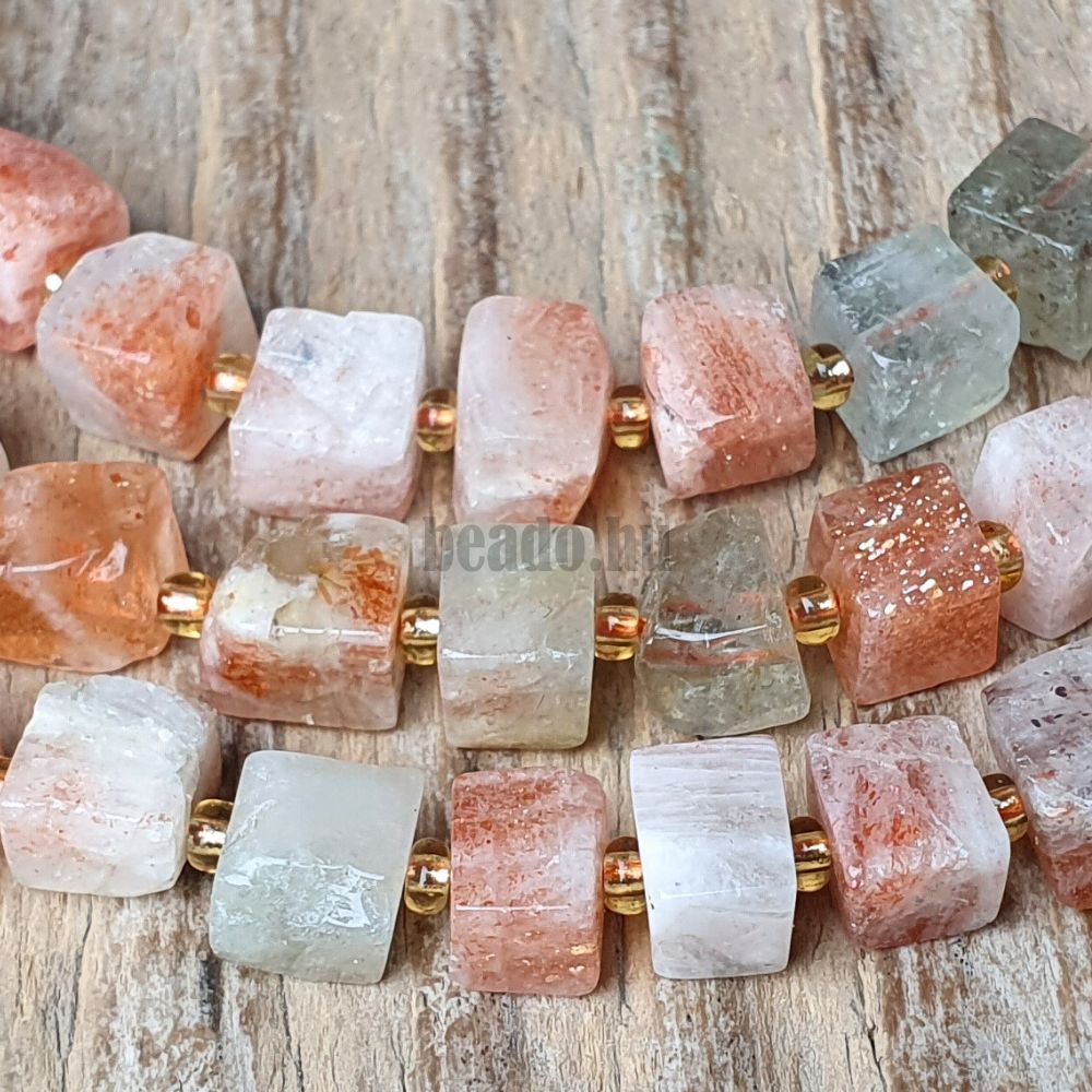 - Napkő Arusha gyöngyök 7–8 mm szabálytalan kockák félhosszú zsinór
