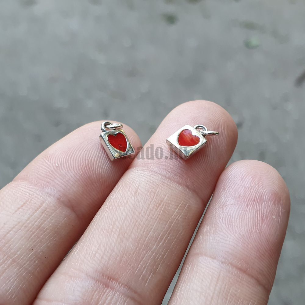 • Négyzet piros szívvel fityegő Ag925 ezüst