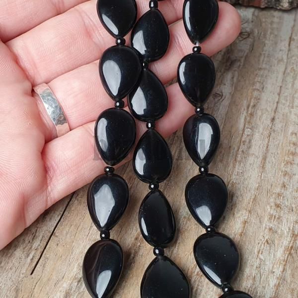 - Obszidián fekete gyöngyök 13x18 mm könnycsepp félhosszú zsinór