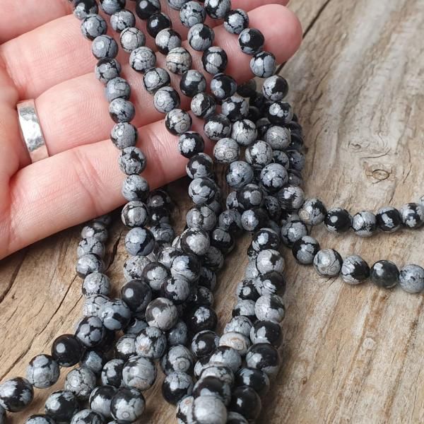 Obszidián hópehely gyöngyök 6 mm zsinór