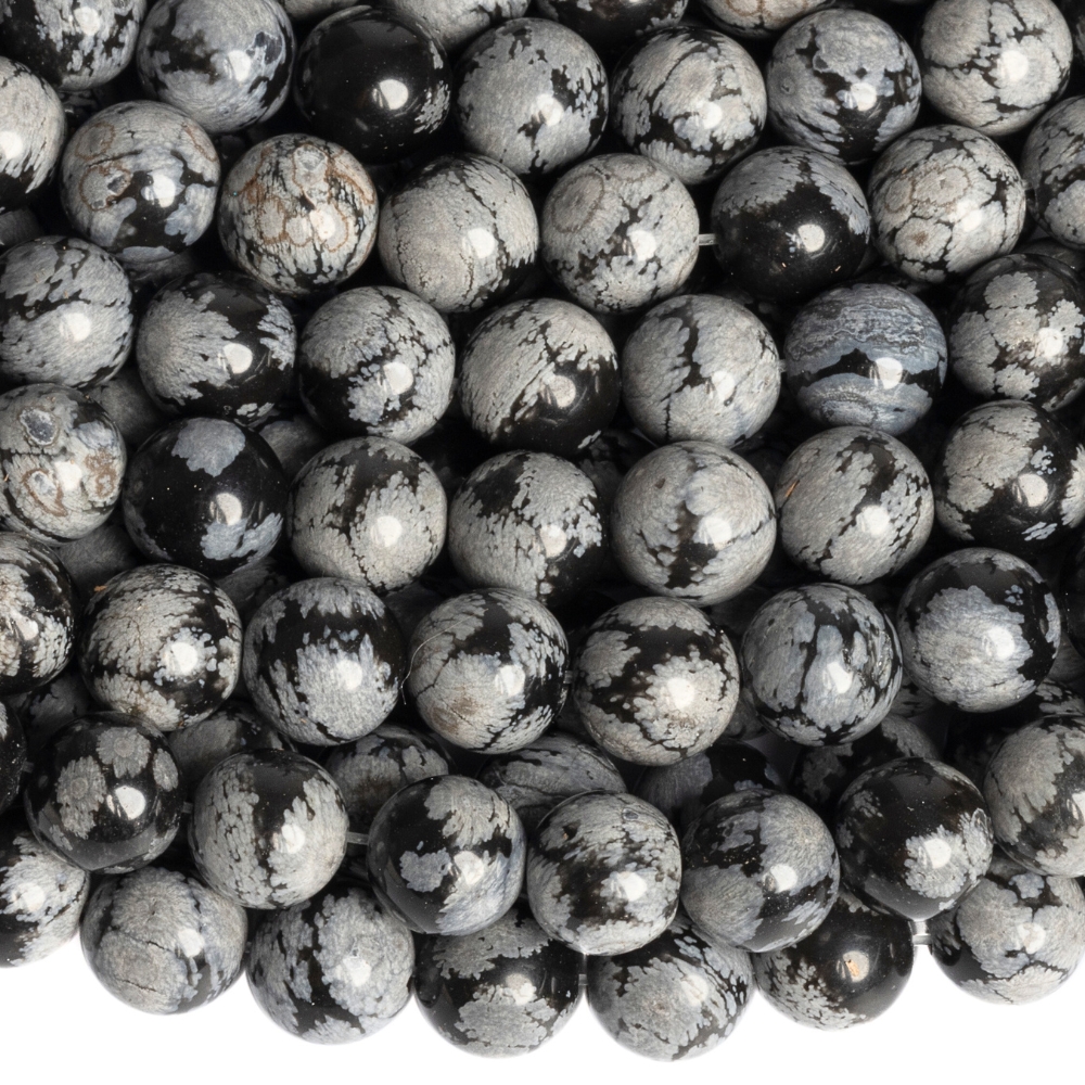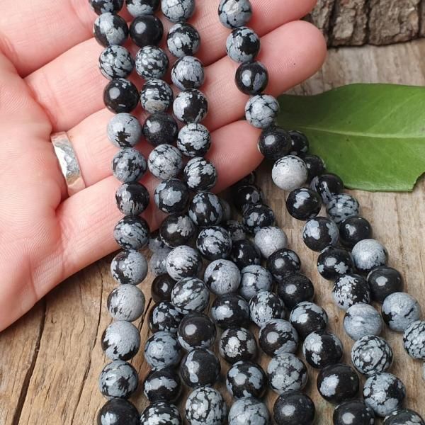 - Obszidián hópehely gyöngyök 8 mm zsinór