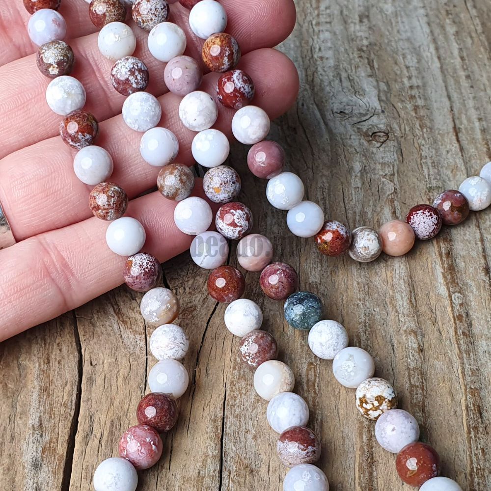 - Óceán achát barna-fehér gyöngyök 8 mm félhosszú zsinór