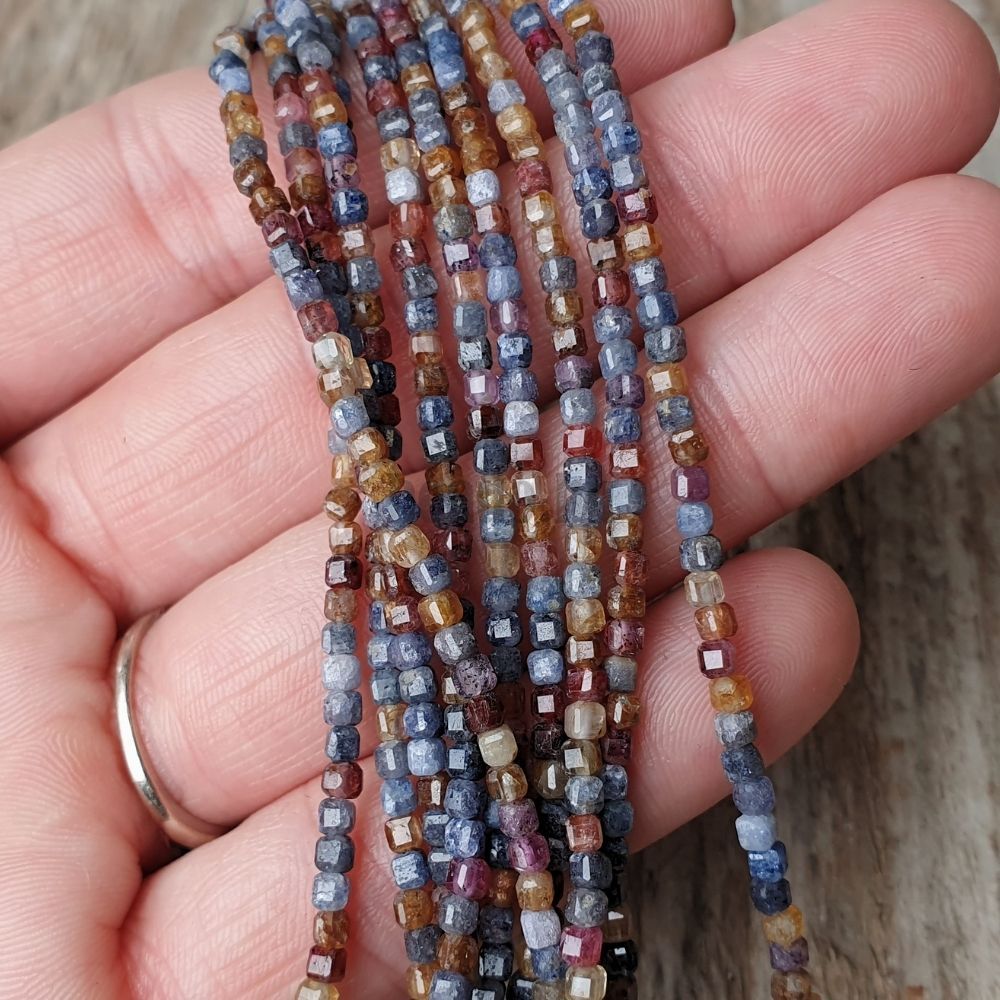 Rubin + zafír gyöngyök 2,5 mm kockák csiszolt félhosszú zsinór