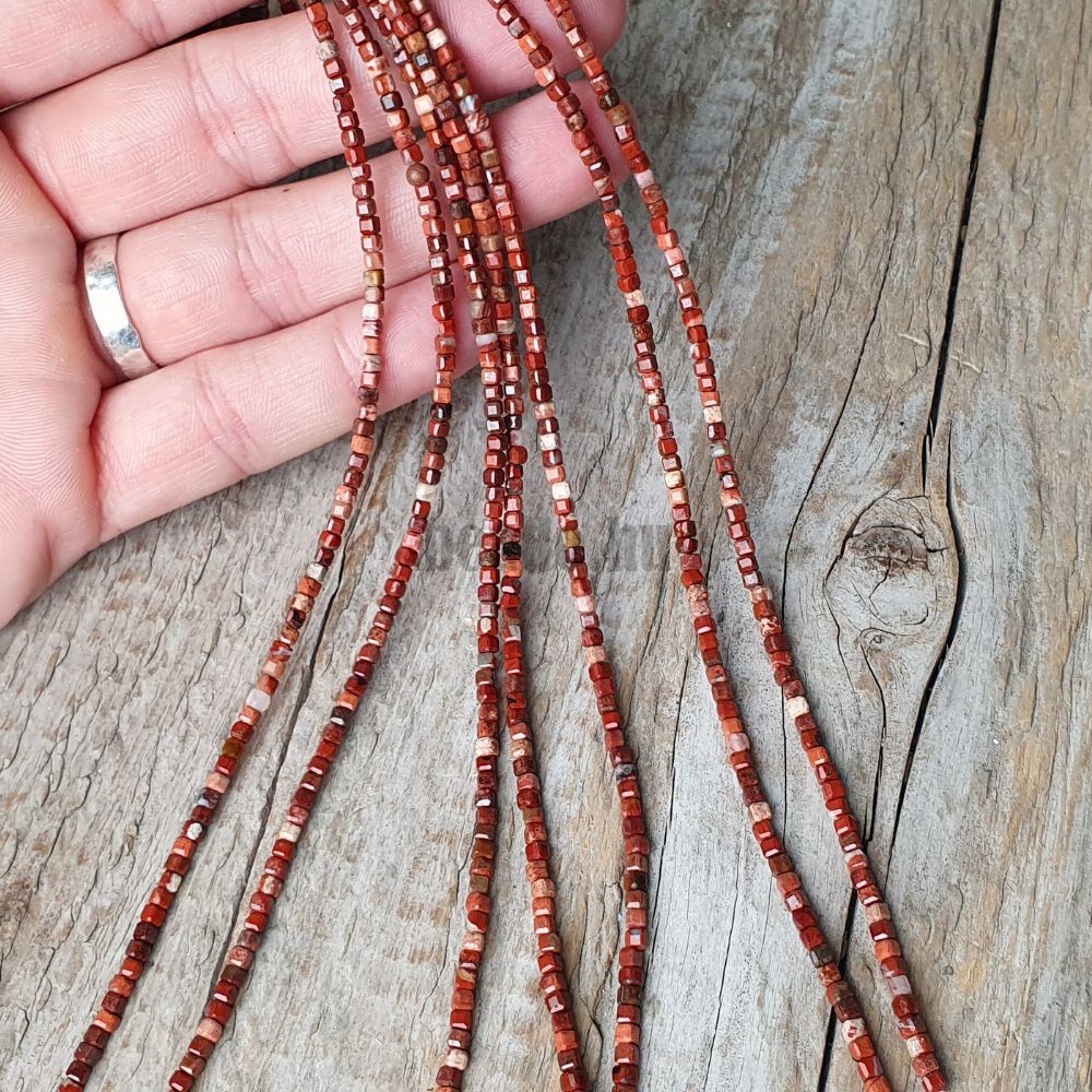• Piros jáspis gyöngyök 2,5 mm csiszolt kockák félhoszú zsinór