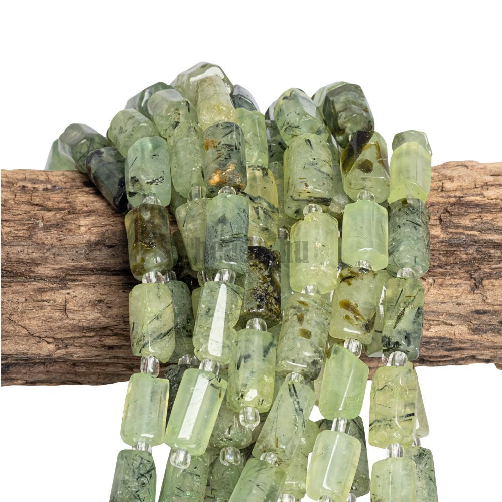 Prehnit gyöngyök hengerek fényes félhosszú zsinór