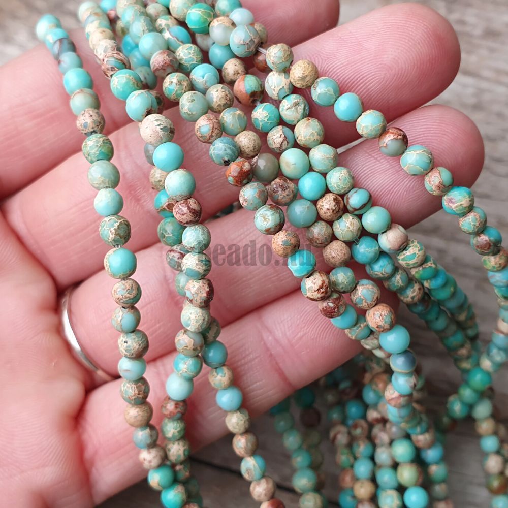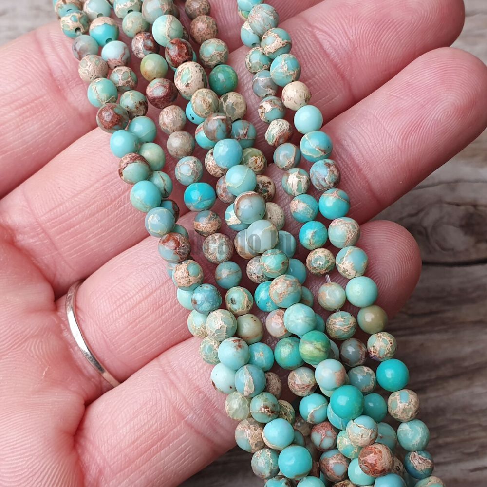 - Regalit jáspis gyöngyök 4 mm halványtürkiz zsinór