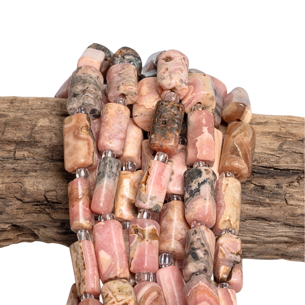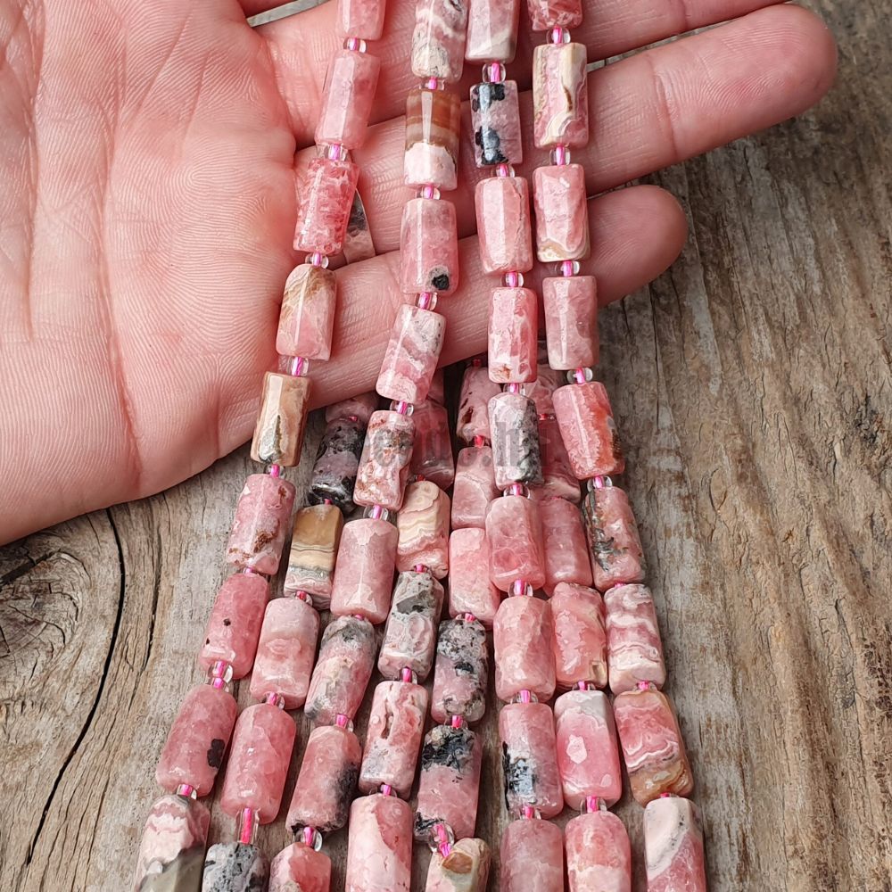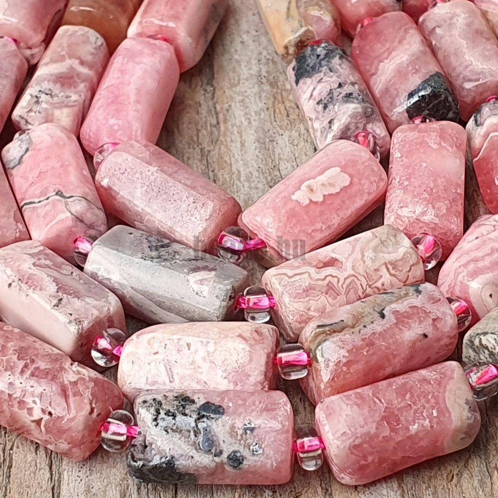 - Rodokrozit gyöngyök hengerek fényes félhosszú zsinór