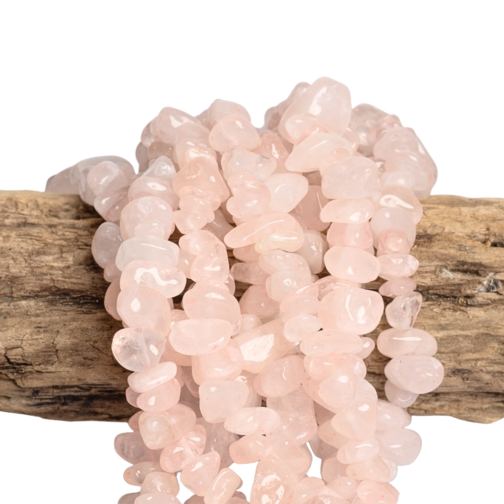- Rózsakvarc ásványtörmelék gyöngyök zsinór