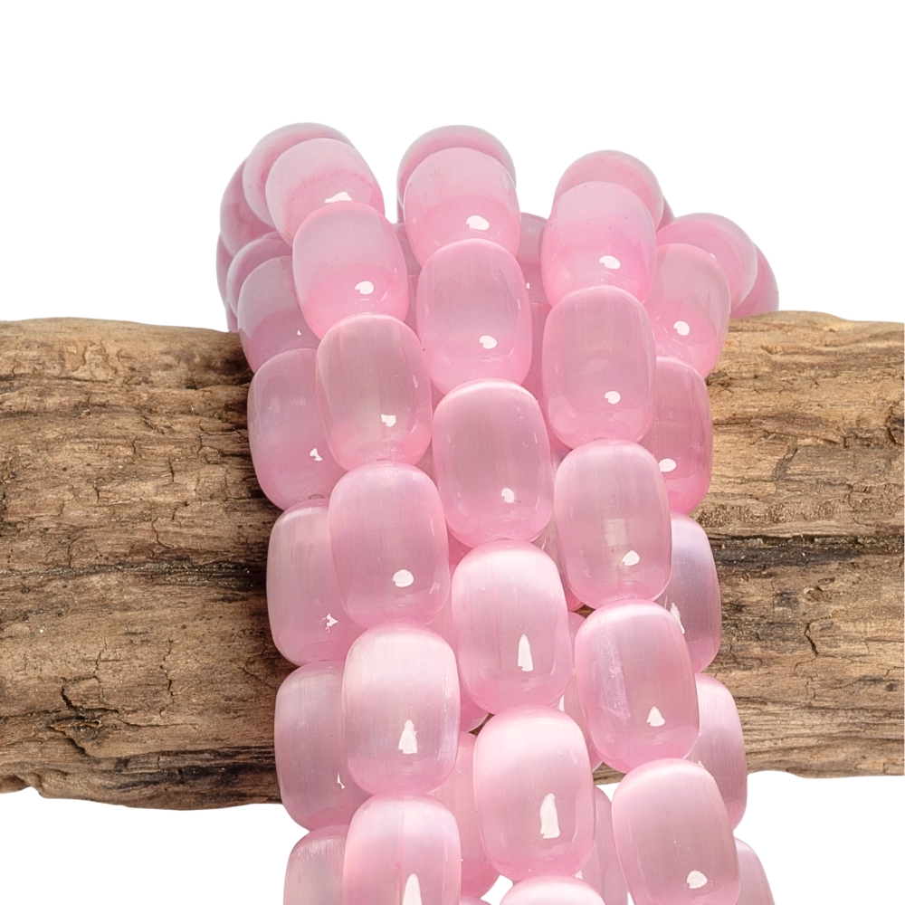 Rózsaszín szelenit gyöngyök 8×12 mm hengerek félhosszú zsinór