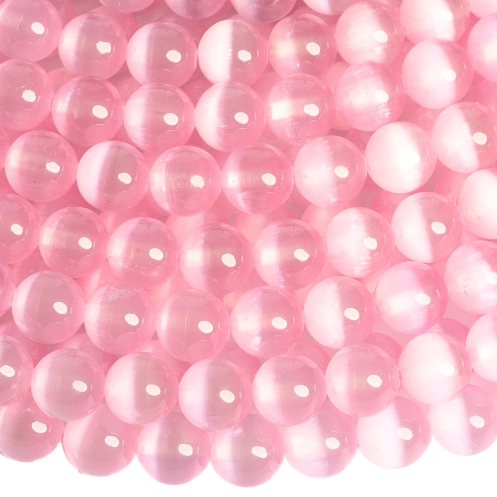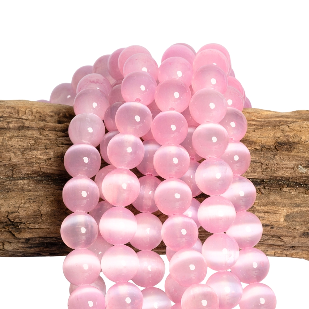 Rózsaszín szelenit gyöngyök 8 mm félhosszú zsinór