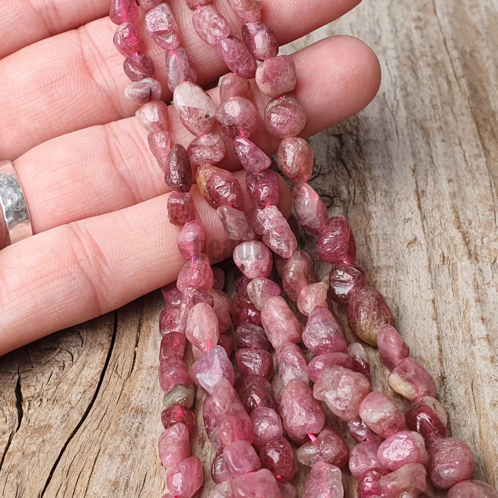 - Rózsaszín turmalin nyers gyöngyök zsinór