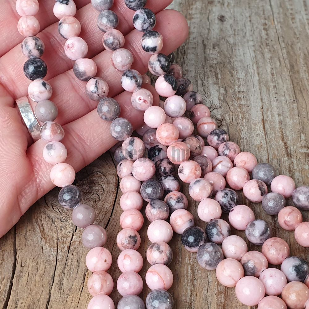 - Rózsaszín zebra jáspis gyöngyök 8 mm zsinór