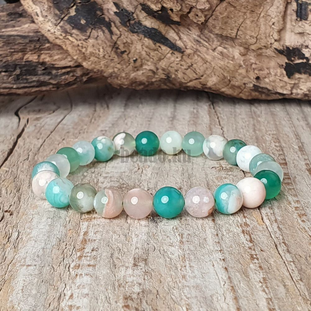 - Sakura achát rózsaszín-zöld gyöngy karkötő 8 mm
