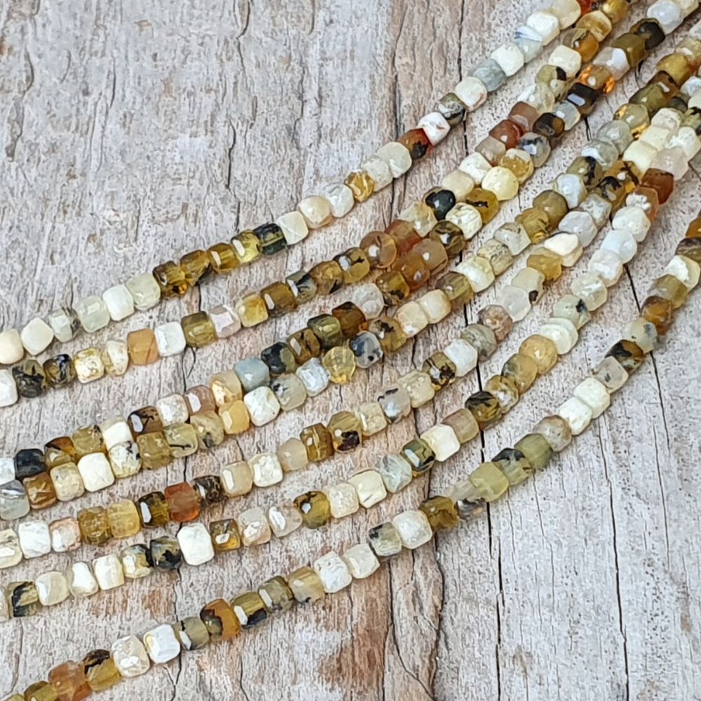 Sárga opál gyöngyök 2,5 mm csiszolt kockák félhoszú zsinór