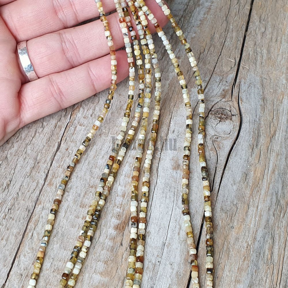 • Sárga opál gyöngyök 2,5 mm csiszolt kockák félhoszú zsinór