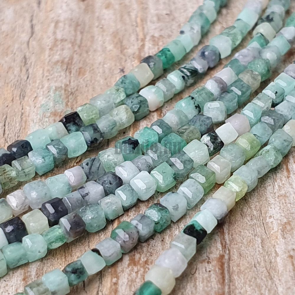 - Smaragd gyöngyök 2,5 mm kockák csiszolt félhosszú zsinór