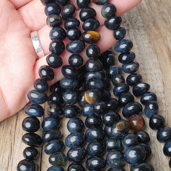 Sólyomszem sötét gyöngyök kövek 8x12 mm zsinór