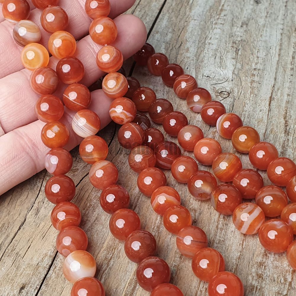 - Szalagos achát gyöngyök 10 mm narancsszínű zsinór