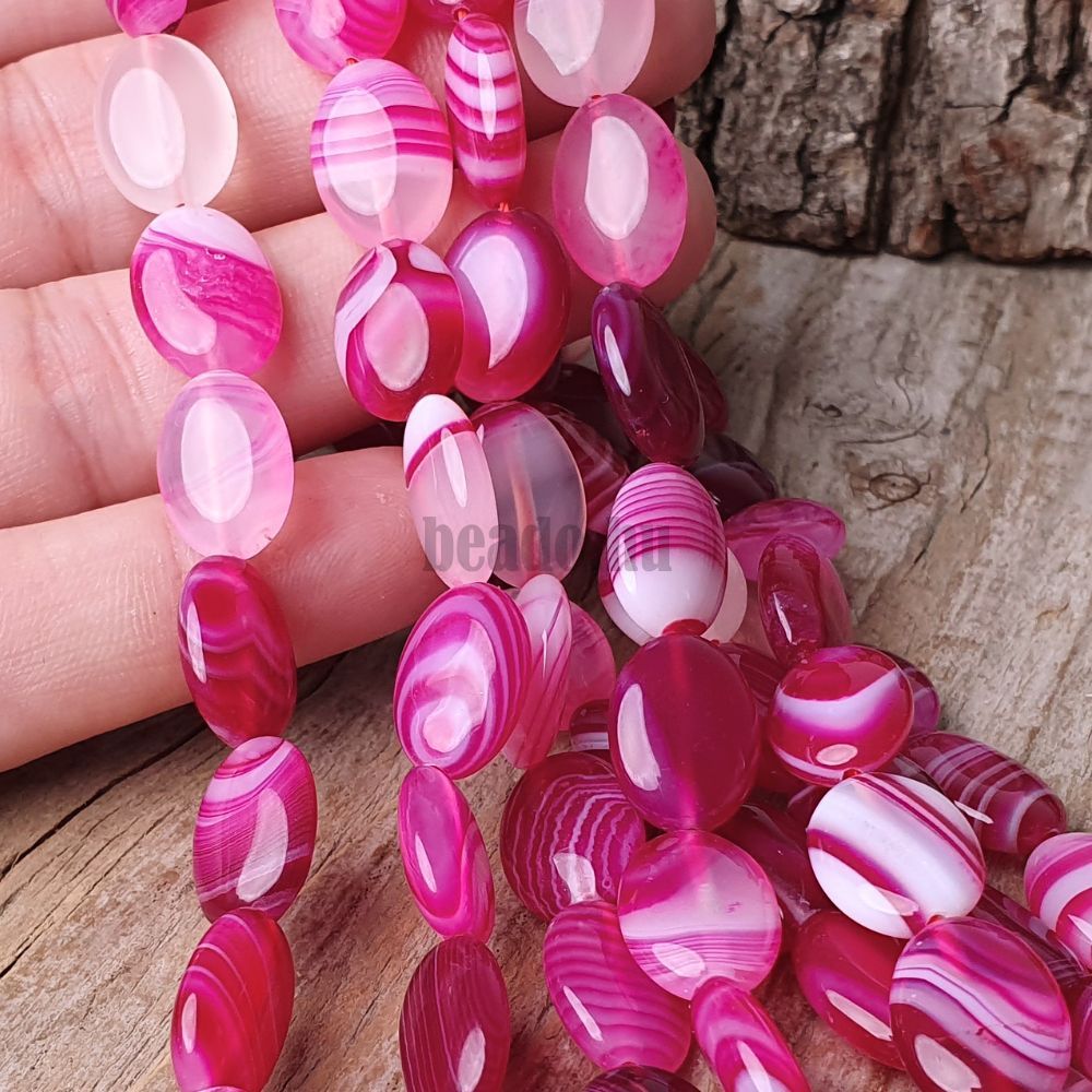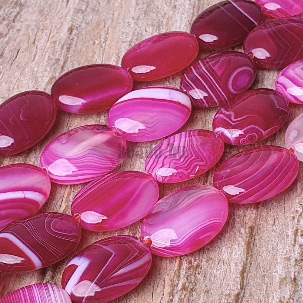 - Szalagos achát gyöngyök 10x14 mm ovális fukszia zsinór