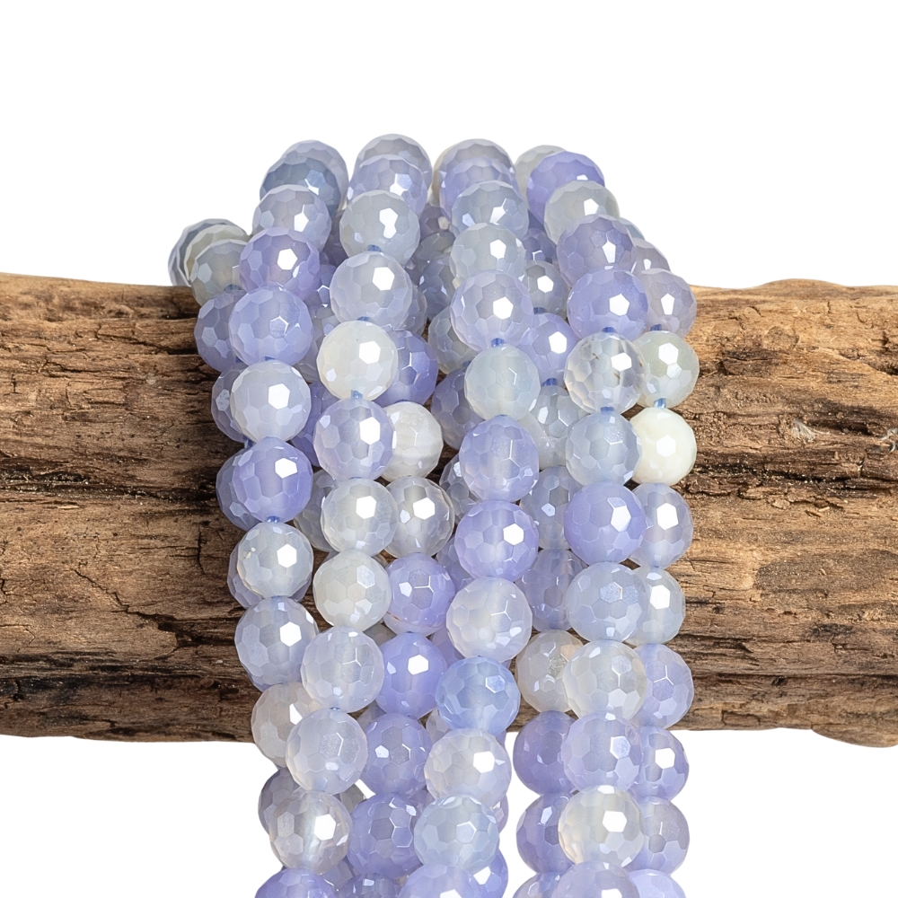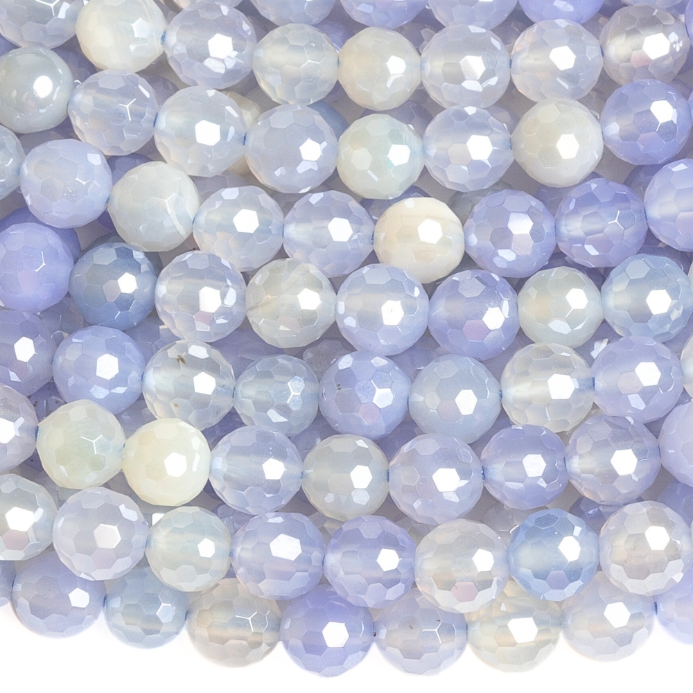 - Szalagos achát gyöngyök 6 mm csiszolt égszínkék bevonattal zsinór