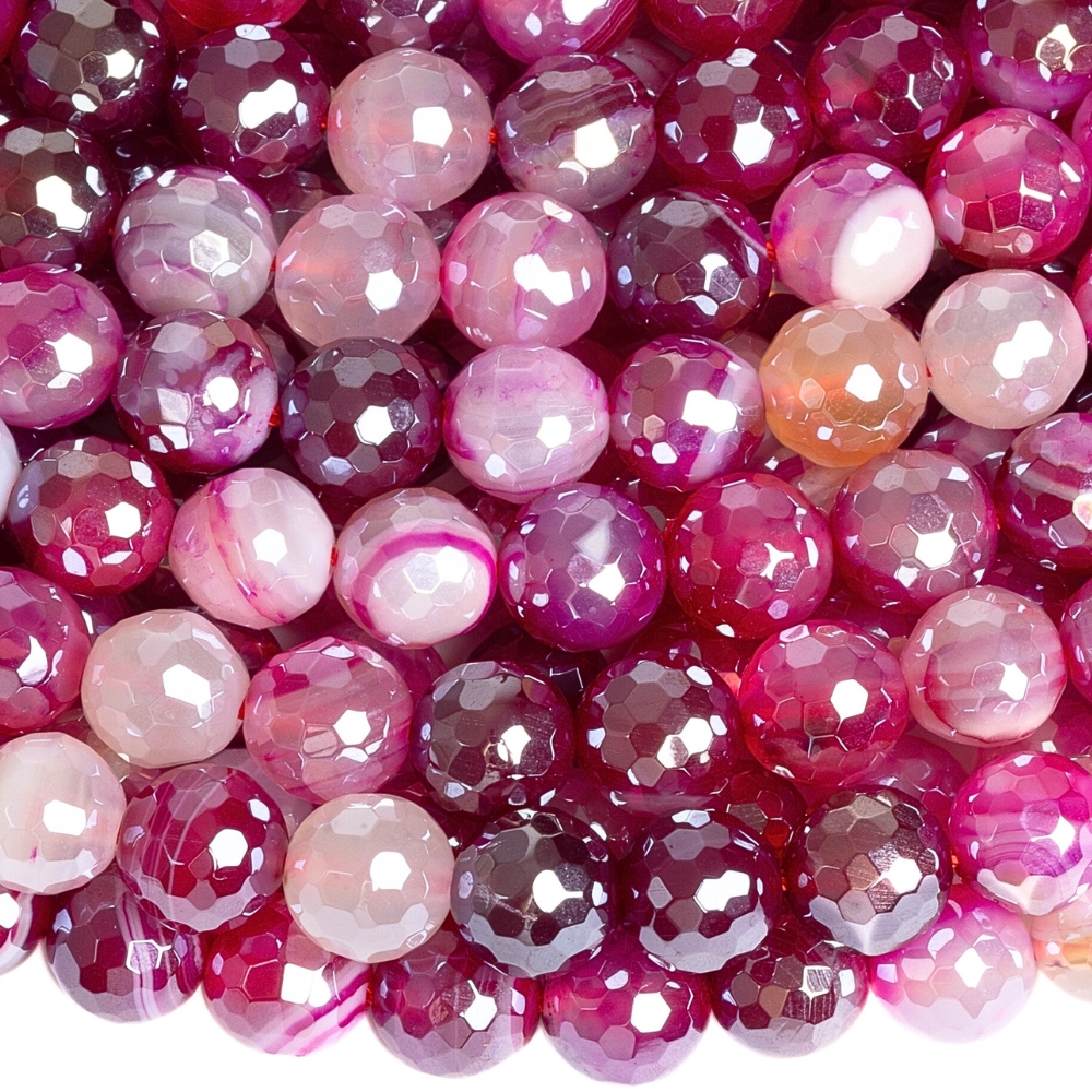 - Szalagos achát gyöngyök 8 mm csiszolt fukszia bevonattal zsinór
