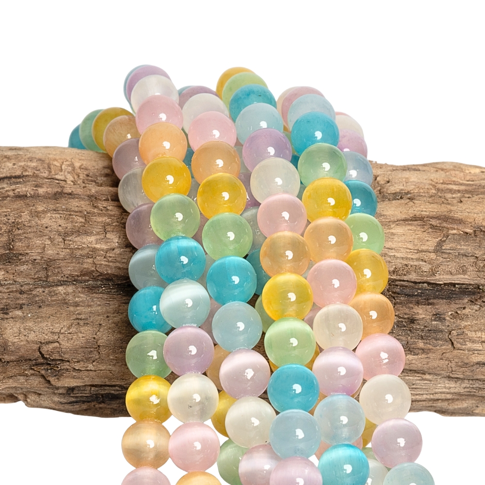 Színkeverék szelenit gyöngyök 6 mm félhosszú zsinór