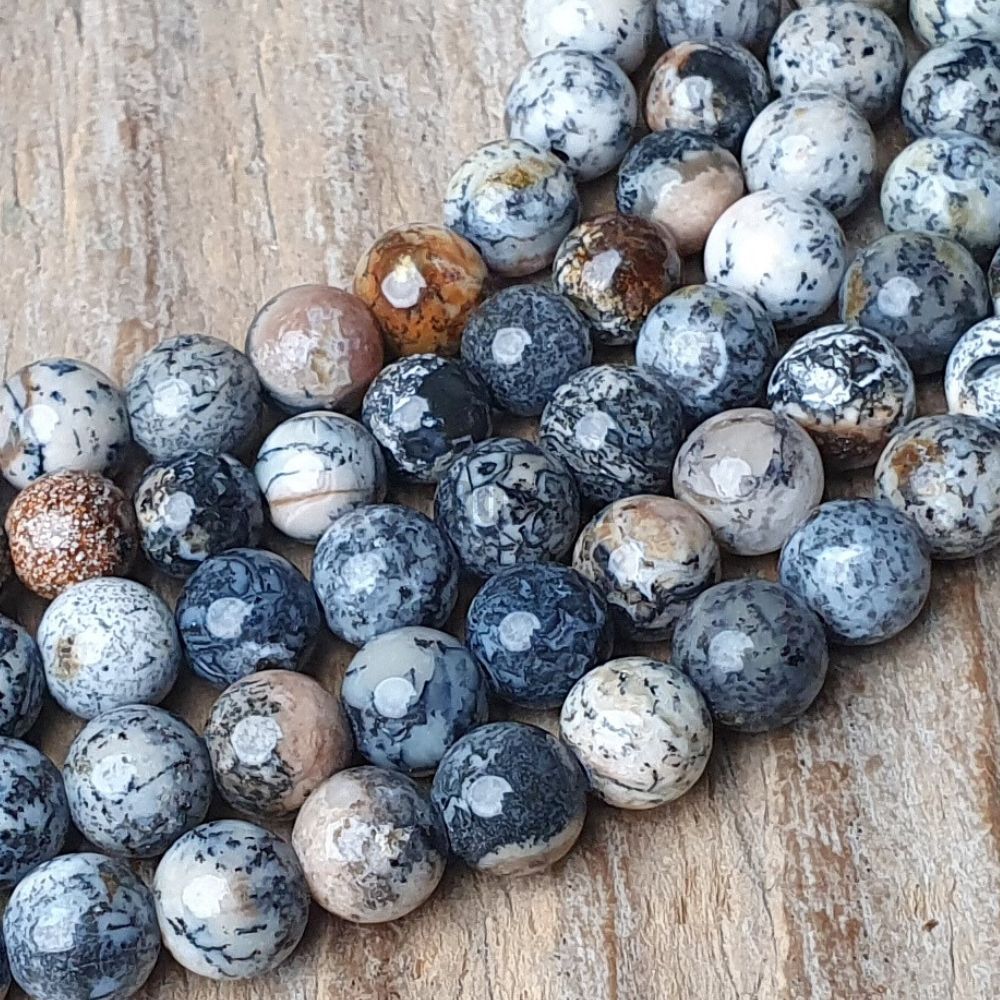 Szürke-fehér opál gyöngyök 6 mm félhosszú zsinór