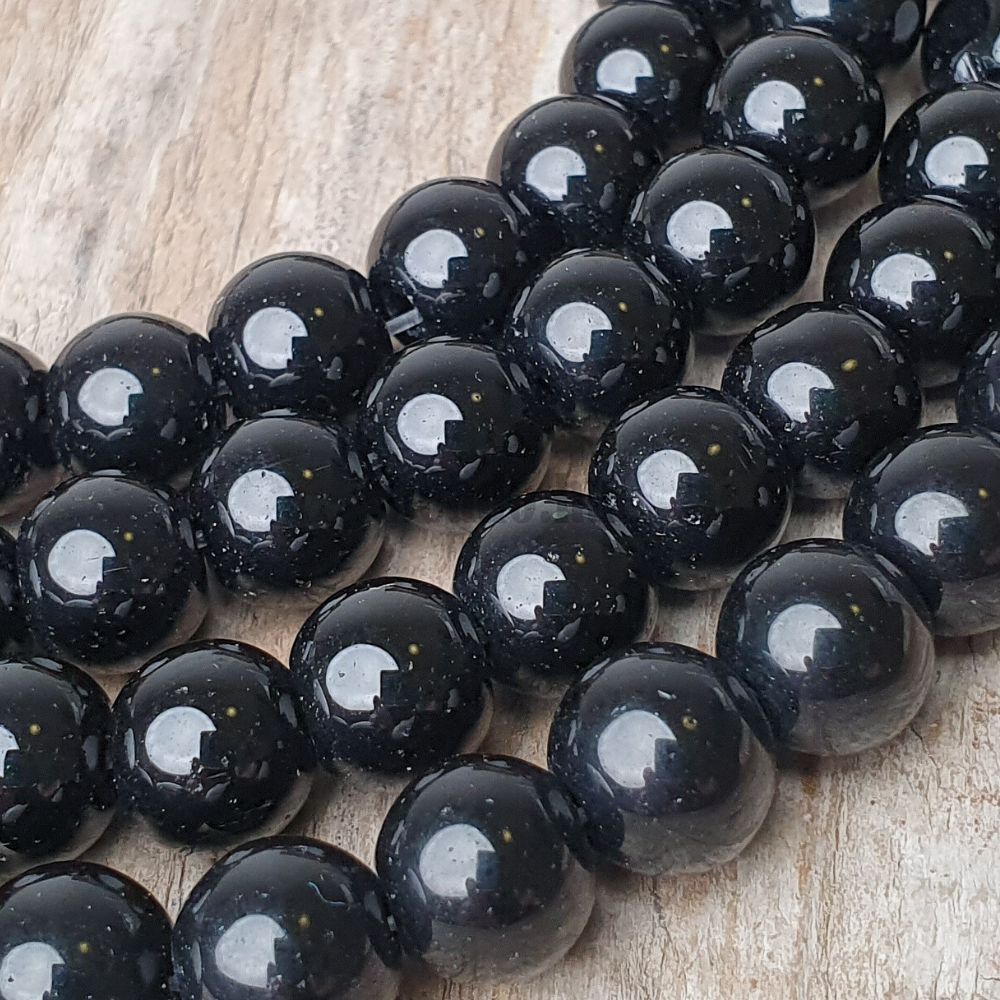 Tejüveg gyöngyök 8 mm fekete zsinór