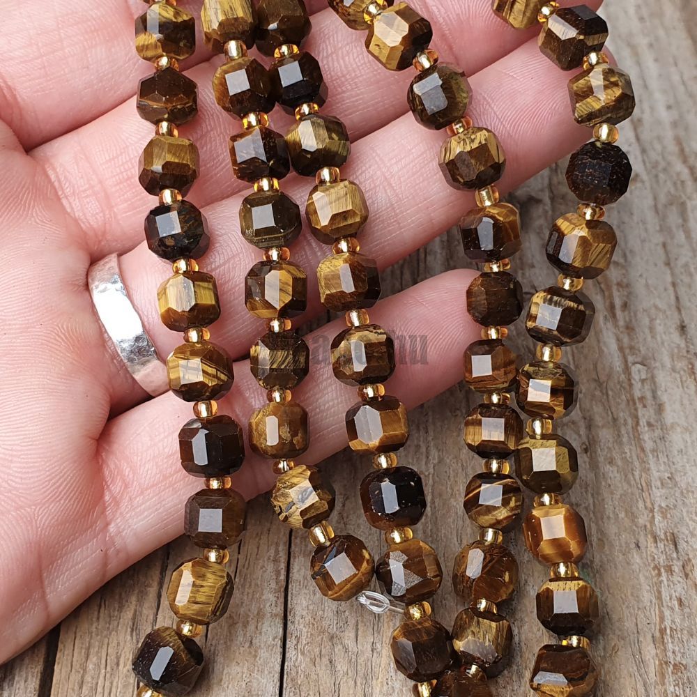 - Tigrisszem gyöngyök 6 mm kockák csiszolt félhosszú zsinór