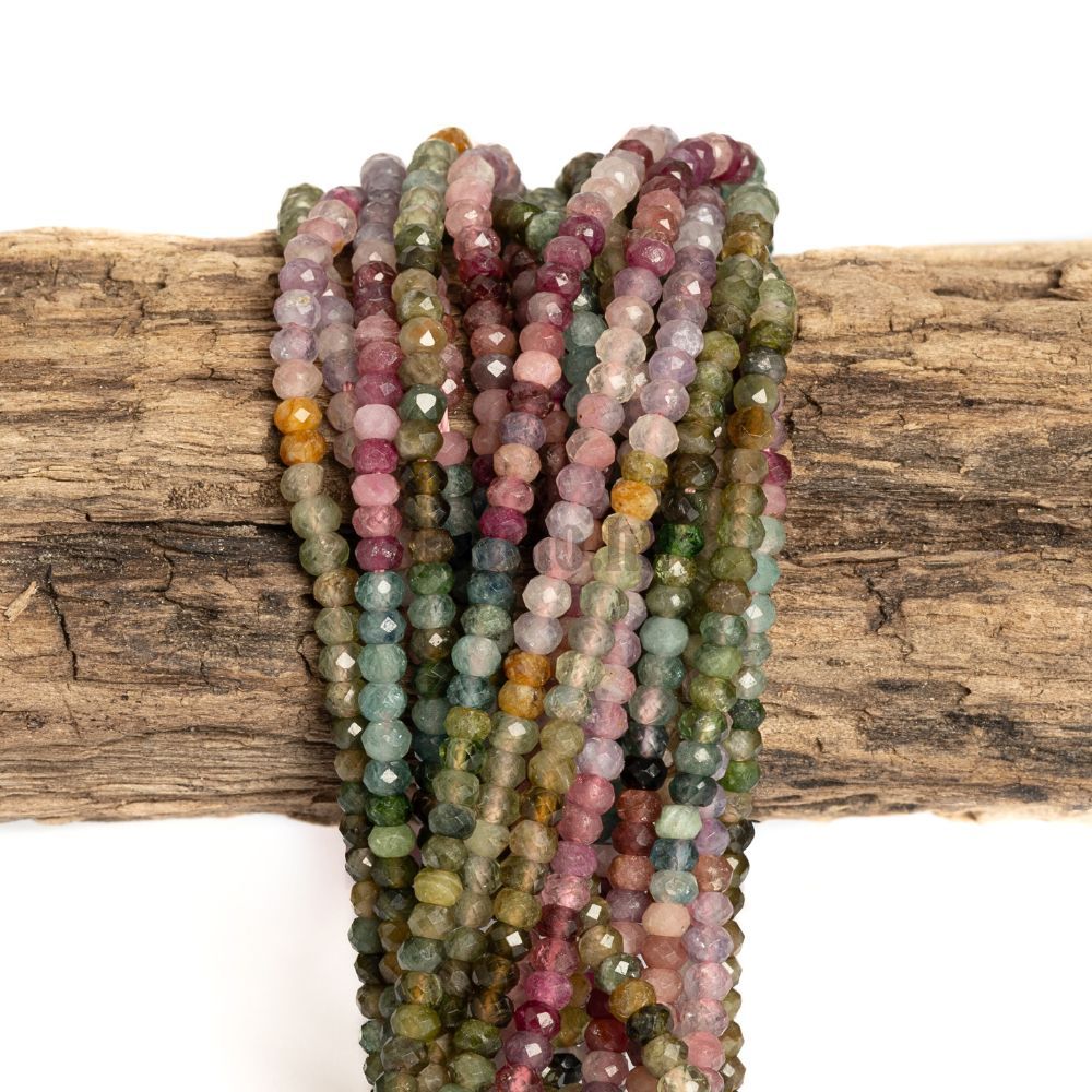 - Többszínű turmalin gyöngyök 3x2 mm fánk csiszolt zsinór