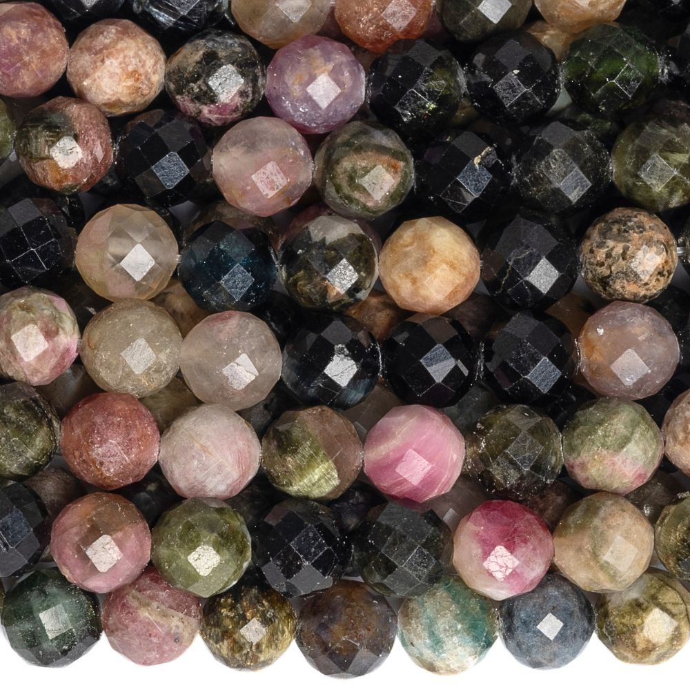 Turmalin gyöngyök 7 mm kevert színek csiszolt félhosszú zsinór