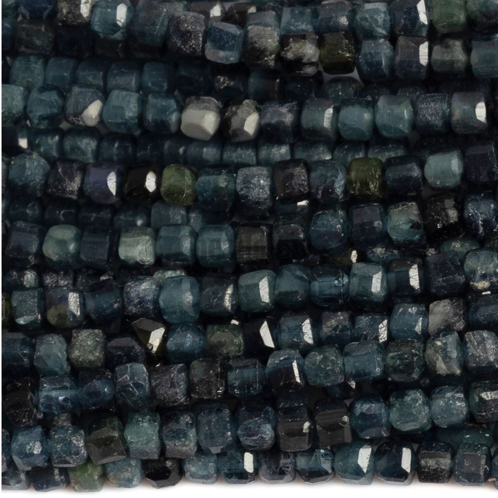 - Turmalin kék gyöngyök 2,5 mm kockák csiszolt félhosszú zsinór