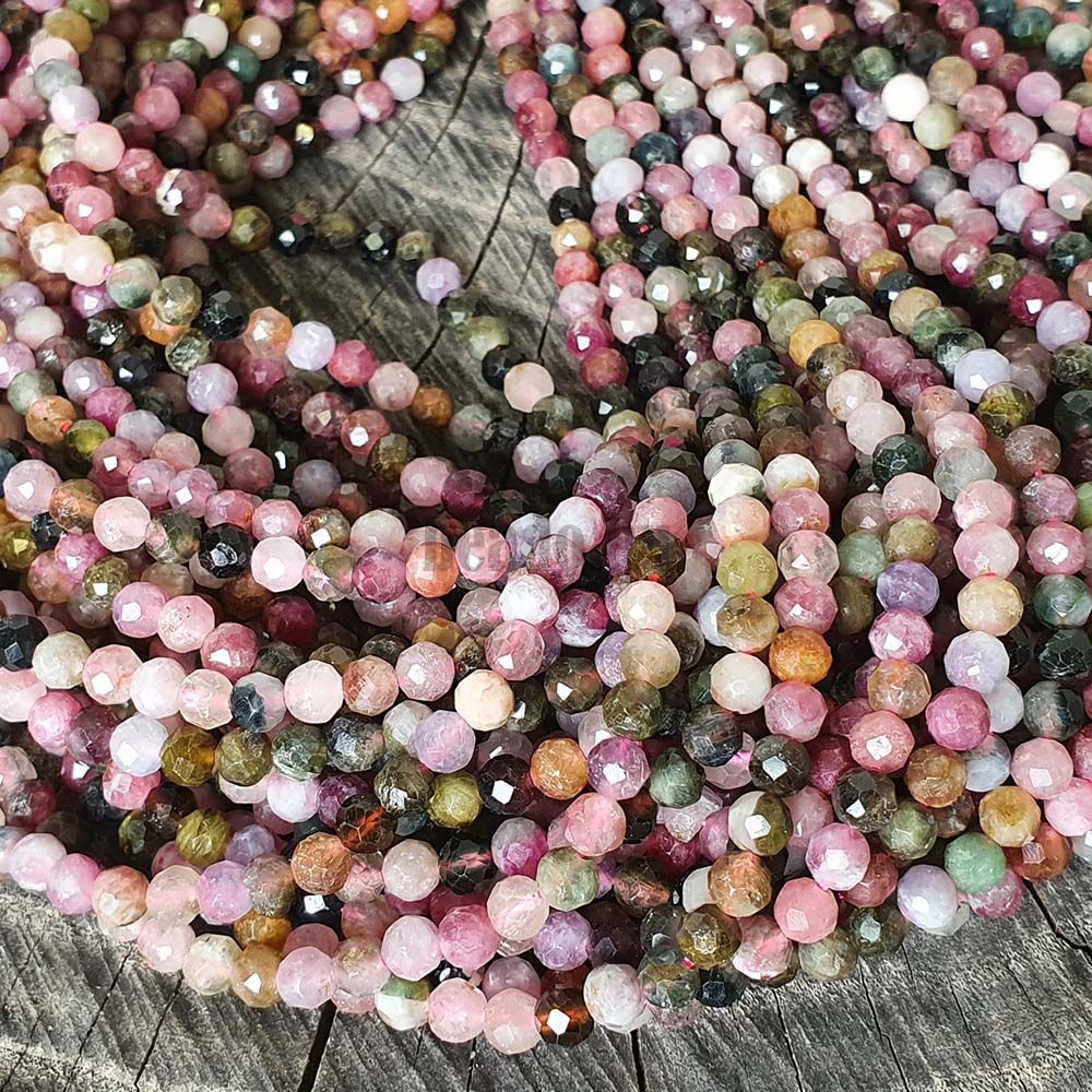 - Turmalin kevert színek gyöngyök 4 mm csiszolt félhosszú zsinór