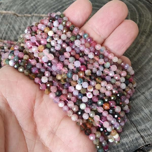 Turmalin kevert színek gyöngyök 4 mm csiszolt félhosszú zsinór