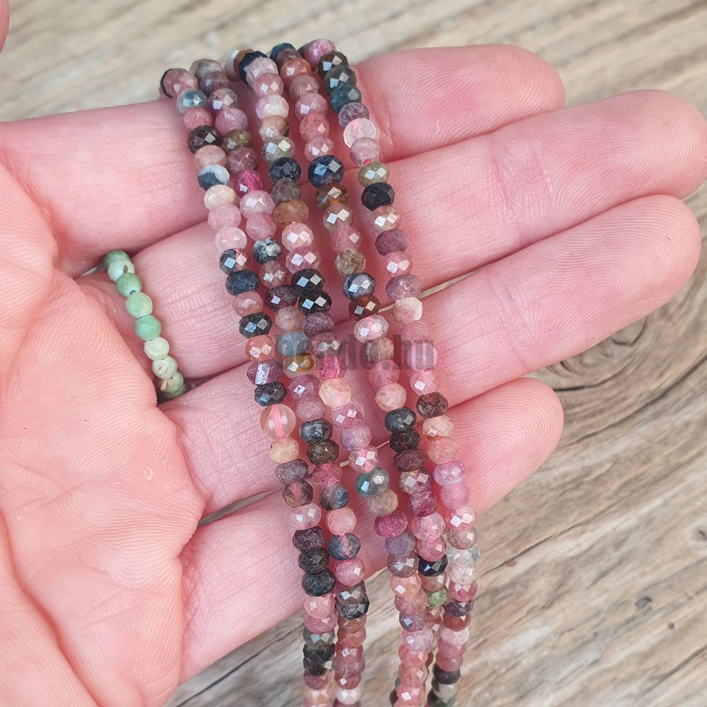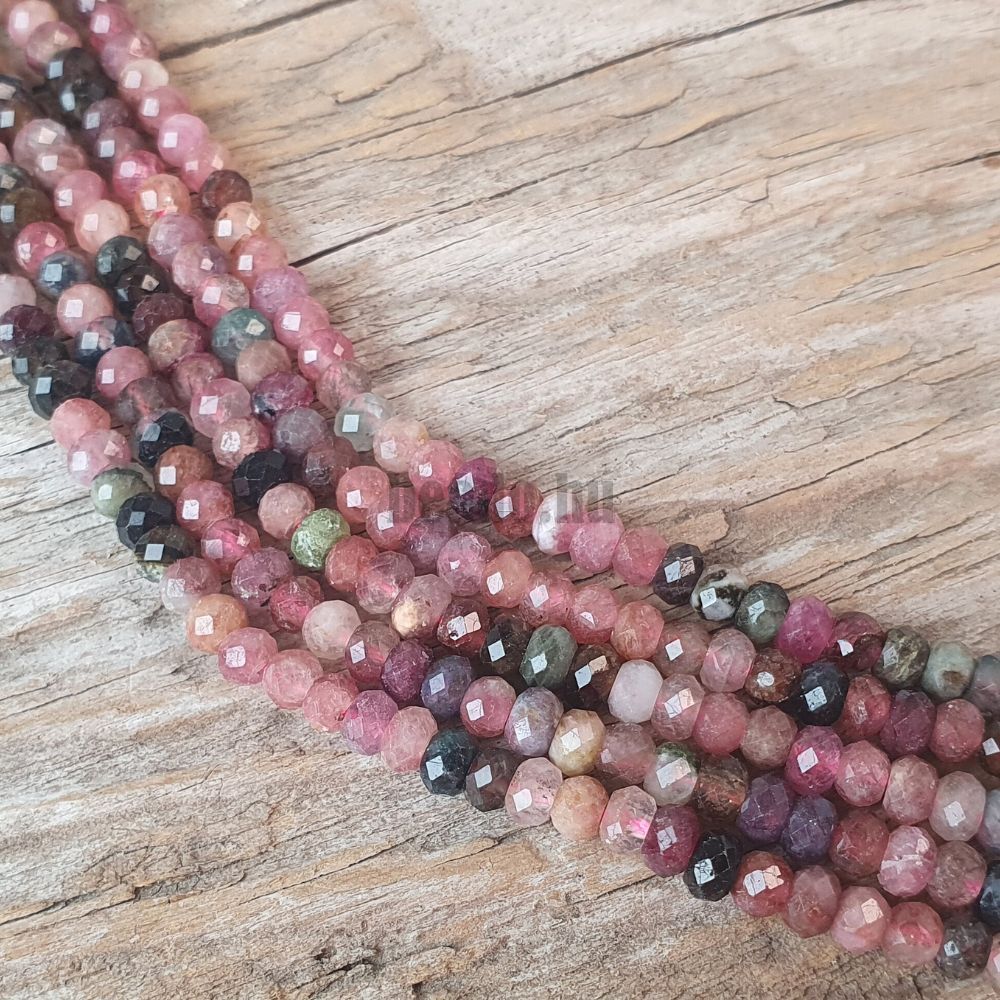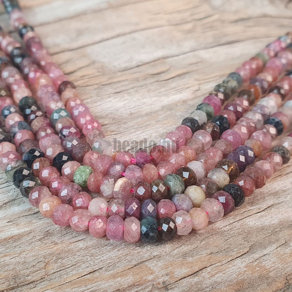 • Turmalin színkeverék gyöngyök 4x3 mm csiszolt rondellák félhosszú zsinór