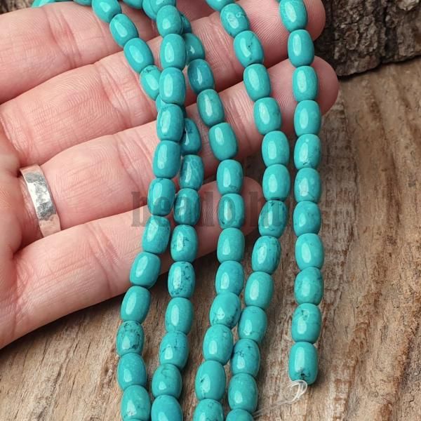 Tyrkenit gyöngyök 6x8 mm hordócskák félhosszú zsinór