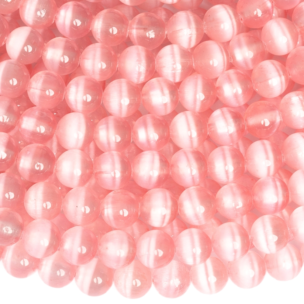 Világos rózsaszín szelenit gyöngyök 6 mm félhosszú zsinór