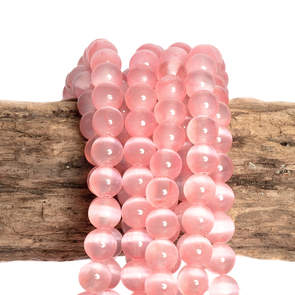 • Világos rózsaszín szelenit gyöngyök 6 mm félhosszú zsinór
