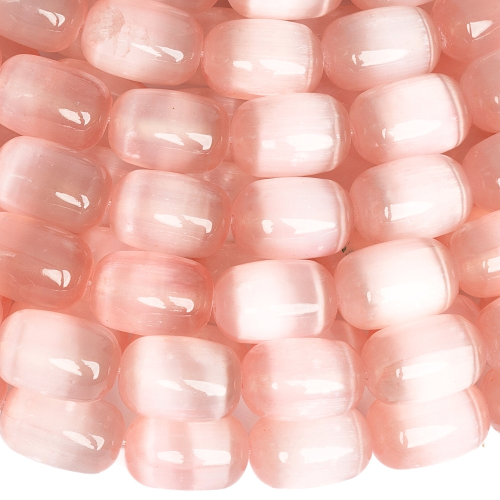 Világos rózsaszín szelenit gyöngyök 8×12 mm hengerek félhosszú zsinór