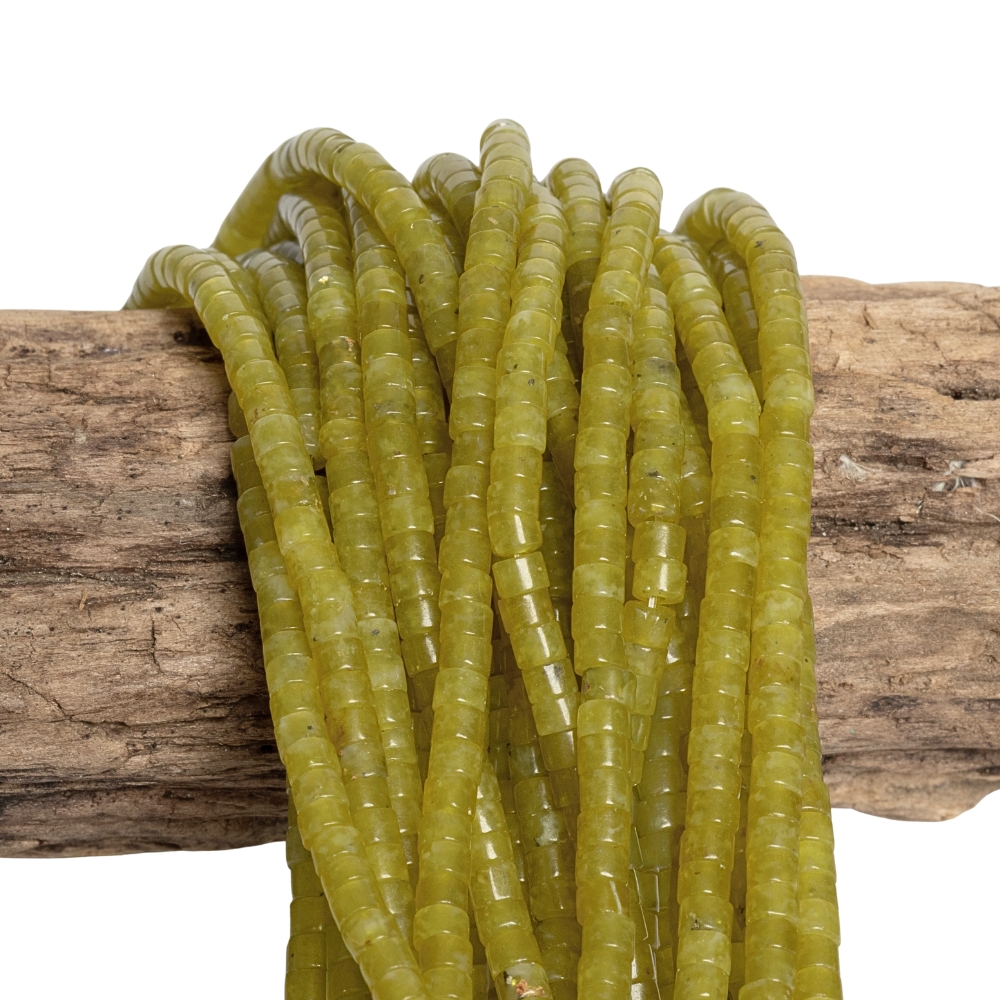 Világoszöld jadeit gyöngyök 2×3 mm rondellák félhosszú zsinór