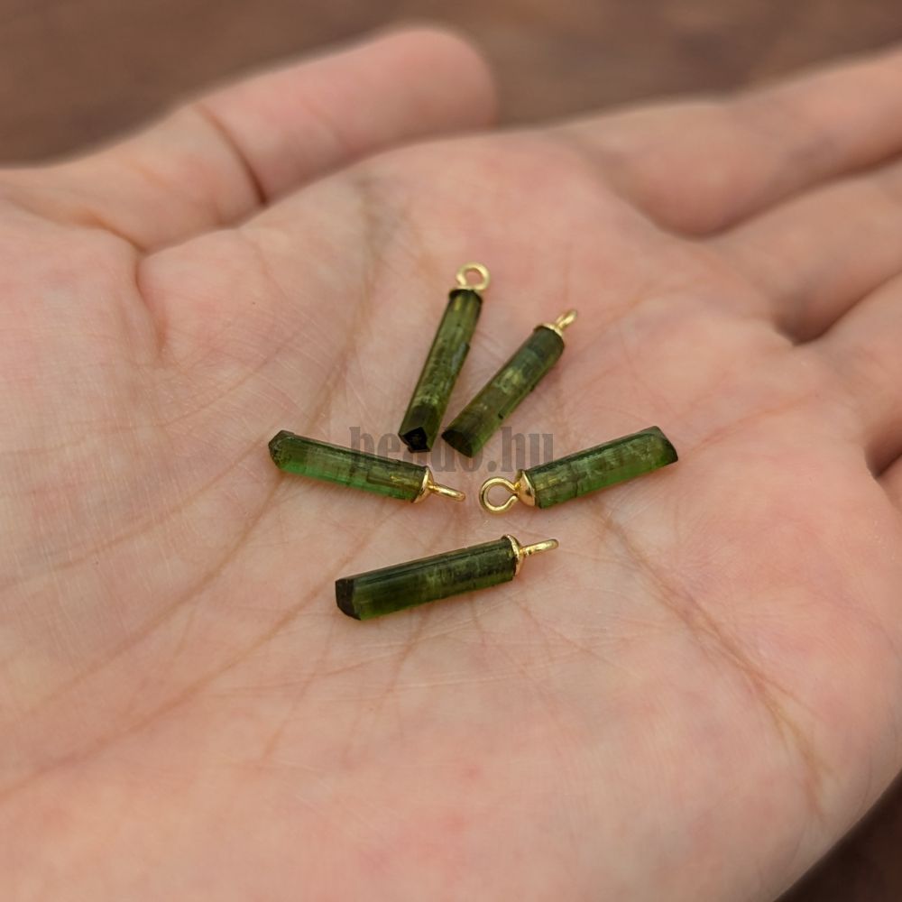 • Zöld turmalin nyers minifüggő arany színű szemmel rozsdamentes acélból